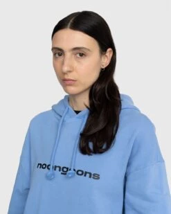 This graphic hoodie from Noon Goons is produced in cotton fleece, featuring a contrasting logo hit printed at the chest. Arriving in a soft blue colorway, the pullover is detailed with traditional design elements including an adjustable drawstring hood, ribbed trims, and a front pouch pocket. In addition to the graphic branding on the front, the piece also incorporates a logo flag at the side seam.