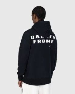 The Oakley x Fragment Logo Hoodie is a nod to Hiroshi Fujiwaraβs clean lines. Available in black and white colorways, the cozy pullover is adorned with contrasting graphic prints on the front, back, and sleeve, where you will find the iconic Oakley Frogskin sunglasses, co-branding, and additional iconography, respectively. The limited edition garment is detailed with traditional hoodie design elements including an adjustable drawstring hood, rib knit trims, and a kangaroo pocket, and features a standard boxy fit.