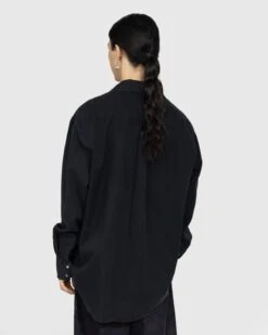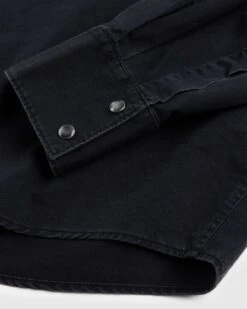 100% cotton. Italian fabric. Vintage washed light twill. Open collar. Snap button closure. Pearl snap buttons. Curved hem. Two chest flap pockets.