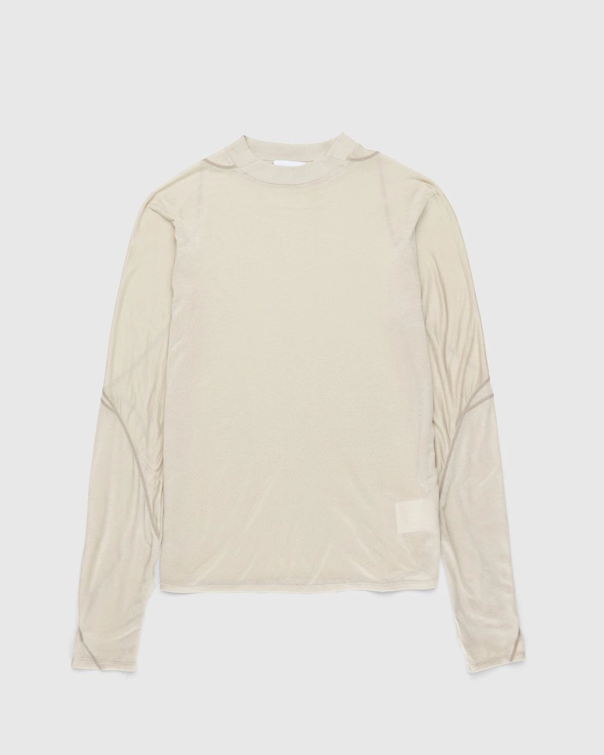 100% lyocell. Soft, lightweight fabric. Coverstitch line throughout. Mock neck. Thumbhole at the sleeves with bartack finish.