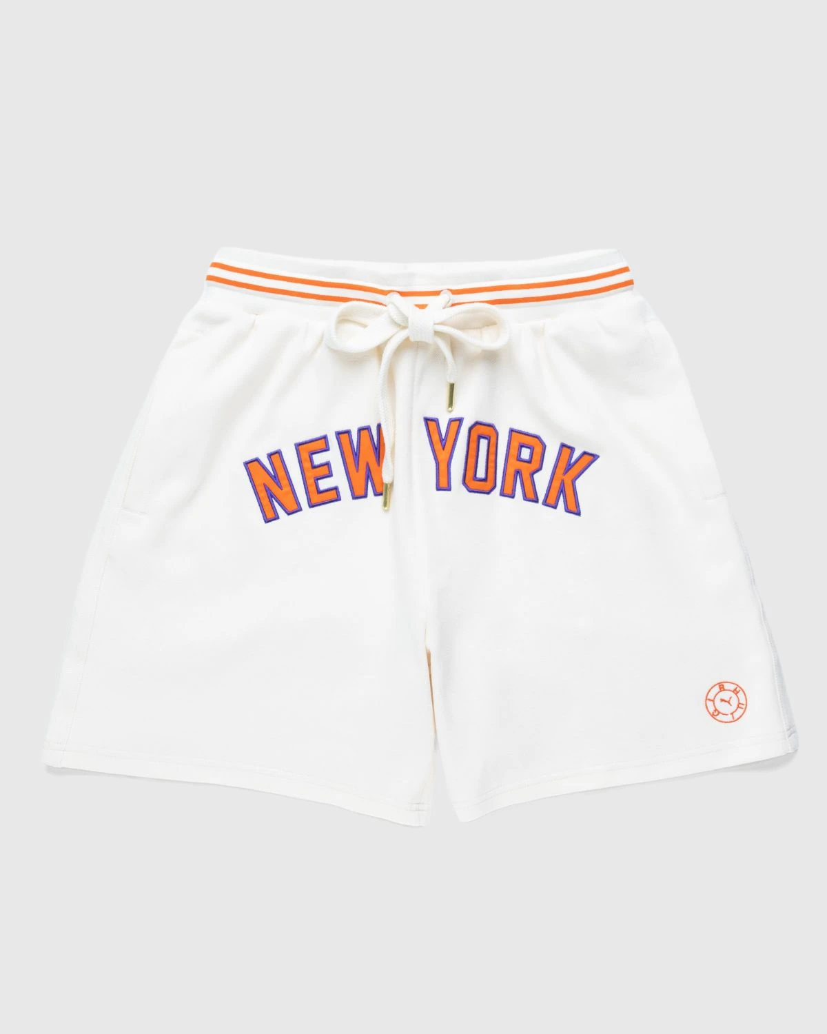 Rhuigiβs latest collection with Puma pays homage to New York City and its influence on youth culture, drawing from pivotal moments like the birth of hip-hop and the striking style of Walt βClydeβ Frazier. A nod to traditional basketball styles, the New York Shorts are crafted from a soft cotton-polyester blend, featuring a ribbed waistband with an external drawstring that allows you to dial in the fit. The pair is outfitted with side hand pockets and a single back pocket, while being embellished with varsity-style lettering on the front and Puma x Rhuigi iconography on the left leg and the back.