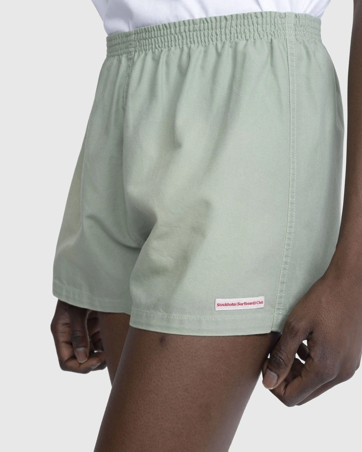 Crafted from lightweight cotton canvas, this seasonal Stockholm Surfboard Club style is a casual short option arriving in a spring and summer-perfect light green colorway. The pair is outfitted with an elasticated waistband for optimal comfort and minimally branded with a small woven label incorporated onto the left leg.