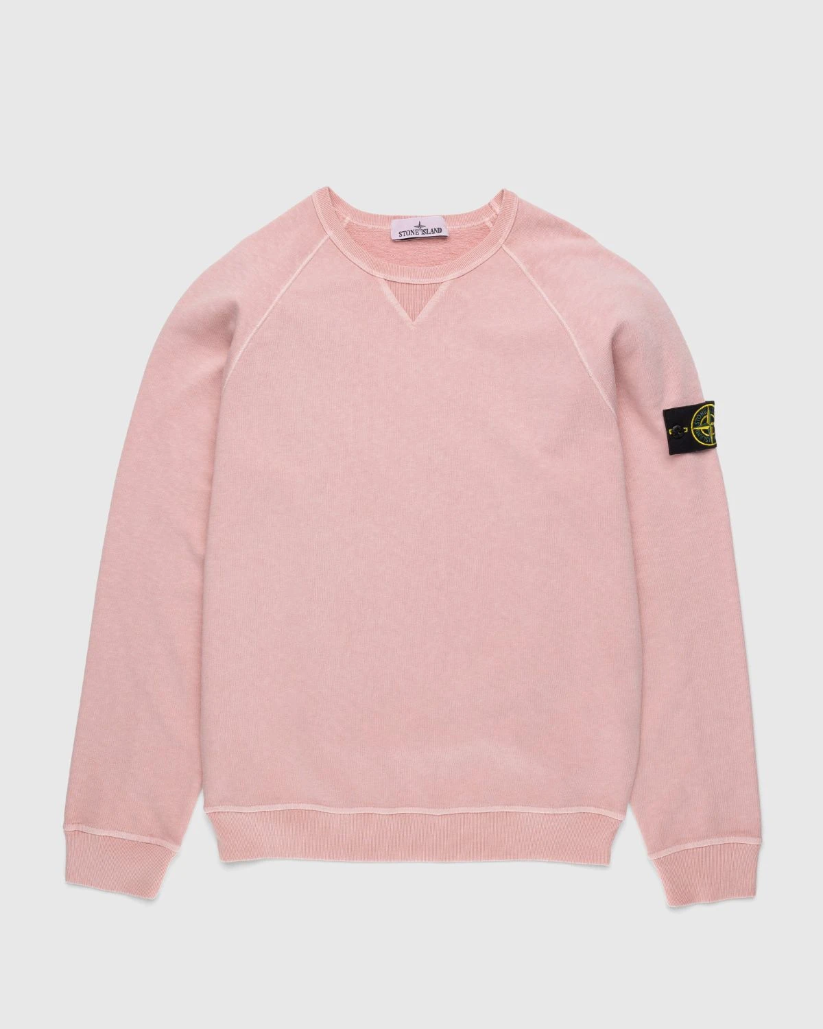 100% Cotton. Crewneck sweater. Garment-dyed. Ribbed neckline, with small triangular ribbed inlay. Raglan sleeves. Ribbed cuffs and bottom band. Stone Island badge on the left sleeve.
