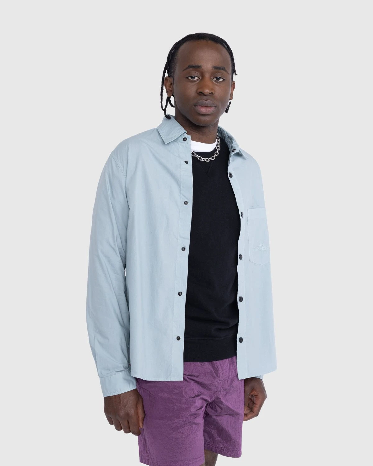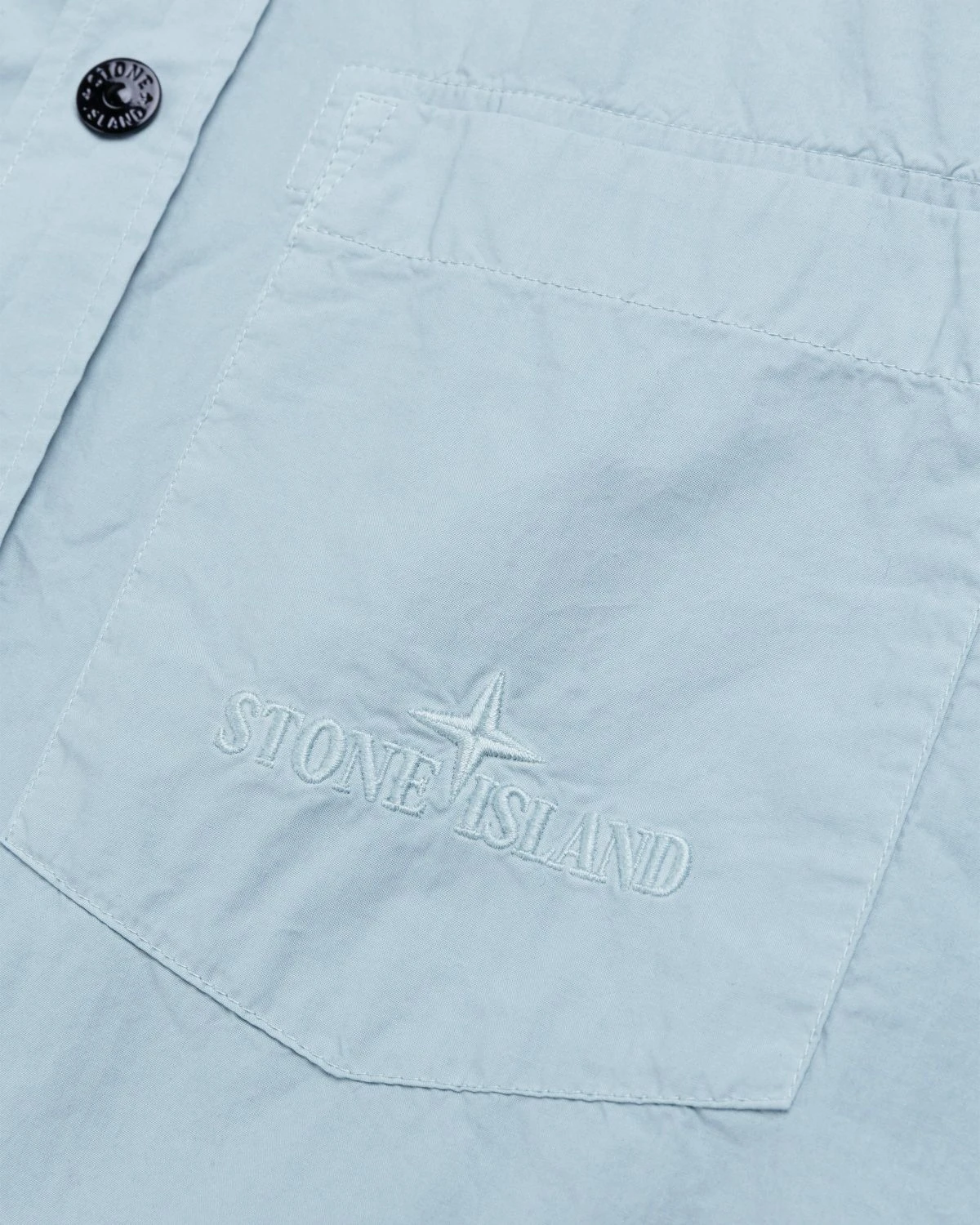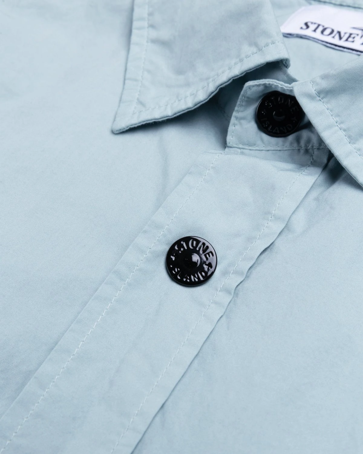 100% Cotton. Garment-dyed. One chest pocket featuring a monochrome Stone Island embroidered logo. Button at cuffs. Yoke on back. Snaps fastening.