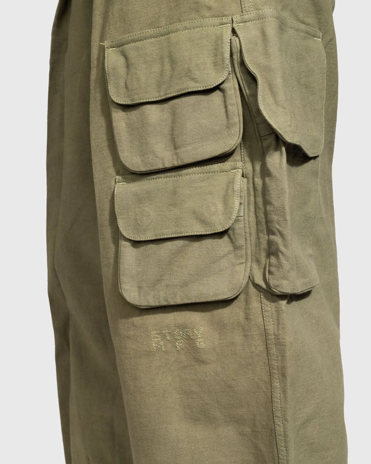 A standout Story mfg. style, the Forager Pant is the spawn of the brandβs forager bag and lush pants. The pair is big and slouchy with a darted taper at the hem, produced in 100% naturally dyed organic cotton. Forager pockets are incorporated onto each leg, implemented in addition to the side hand pockets and back flap pocket. The waist is fit with button fastening and belt loops, as well as an external drawstring.
