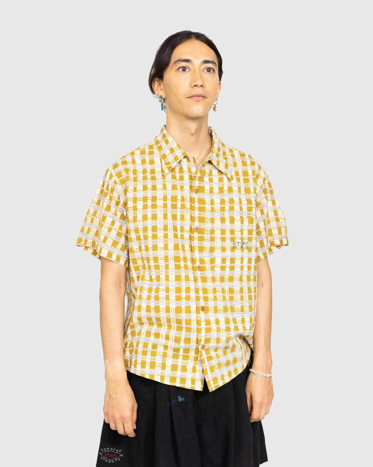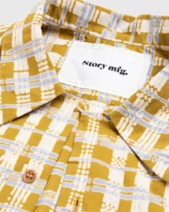 The Shore Shirt is a staple Story mfg. style based on holiday shirts from the 1950s. Made from all-organic cotton, the piece is brought to life with a check block motif throughout for a look that is definitively tied to the brand. More traditional design elements include a classic point collar, front button closure, and a slightly curved hem, as the garment also features a single chest pocket. It is cut in a boxy, oversized fit to ensure a timeless wear.