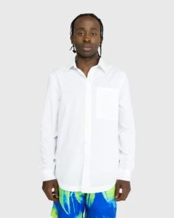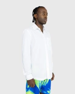 100% cotton. Classic Kent collar. Button closure. Button cuffs. Curved hem. Chest patch pocket with a new tonal circular Levriero logo.
