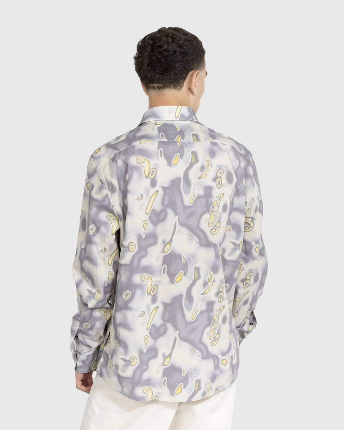 External fabric is 100% cotton. All-over digital heat map print. Kent collar. Button closure. Button cuffs. Logo label at the side seam.