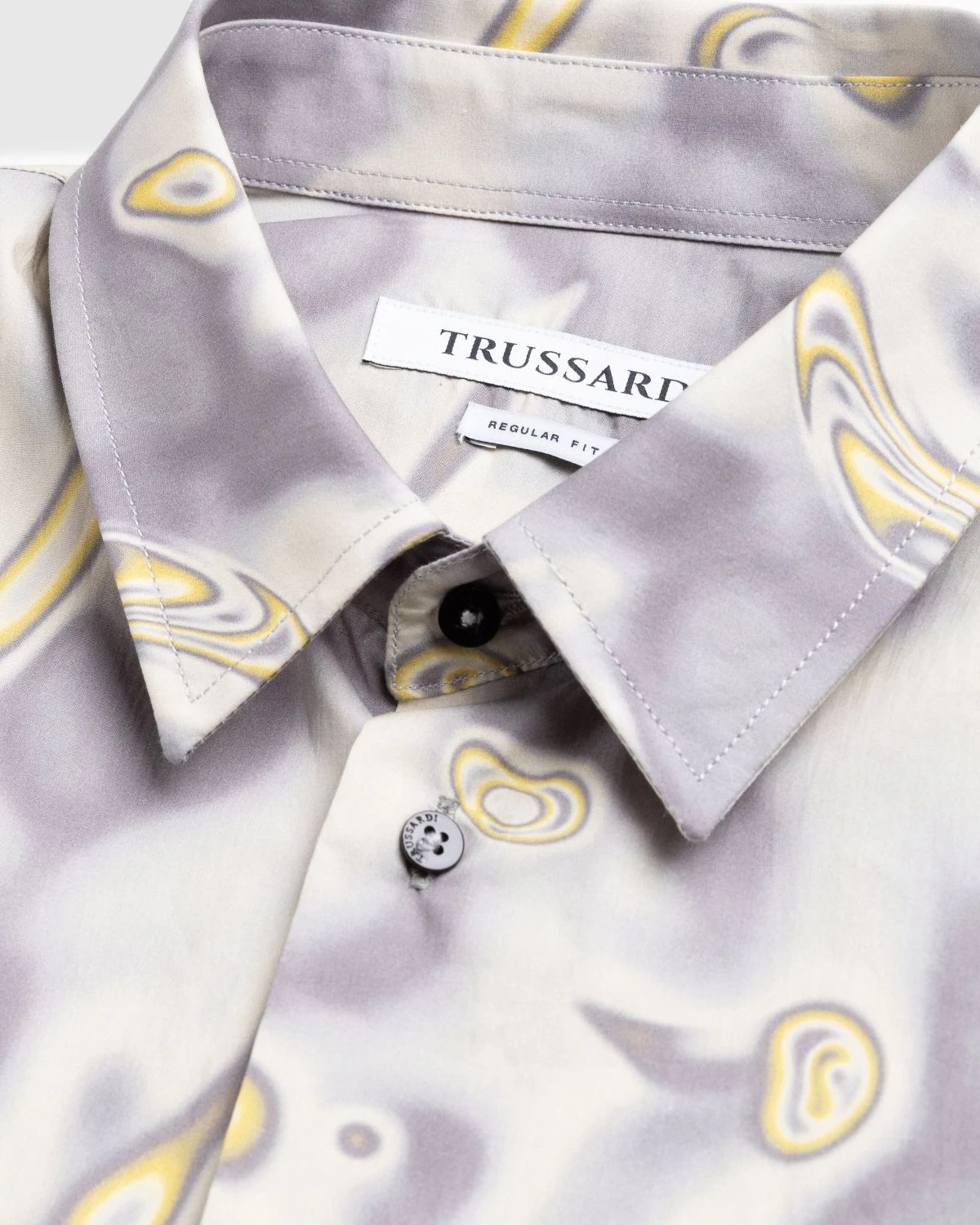 Trussardiβs ability to infuse timeless silhouettes with new, standout designs is on full display with this seasonβs Heat Map Print Shirt. Cut in a standard fit with a psychedelic, almost all-over digital print that bears a resemblance to camouflage, this garment features a classic pointed collar with contrasting buttons throughout.