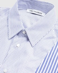 This season, Trussardi delivers a contemporary update to the classic striped button-down. Made from 100% cotton, the longsleeve style is adorned with a two-tone stripe motif, while featuring more traditional design elements including a pointed collar, front button closure, and button cuffs. A small logo tag is incorporated onto the side seam to complete the design.