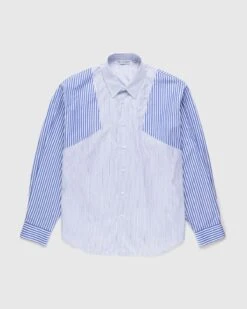 External fabric is 100% cotton. All-over stripe pattern. Pointed collar. Button closure. Button cuffs. Logo label at the side seam.