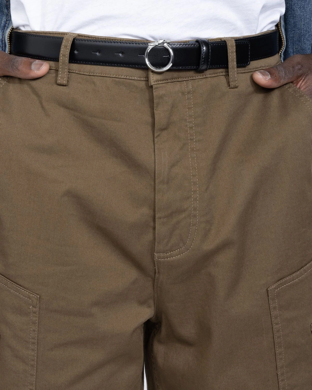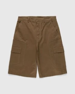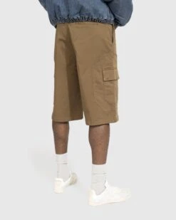 Trussardiβs Gabardine Shorts emerge as an elevated take on the traditional cargo style. The pair arrives in a versatile light brown colorway for effortless matching, featuring concealed fastening and cargo pockets at each leg, in addition to side hand pockets as well as back pockets. Cut just below the knee, the shorts are then finished with a small logo tag, which is incorporated onto the back of the waist.
