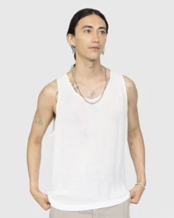 Wales Bonner updates archival leisurewear with the Groove Tank, offered here in the brandβs signature ivory shade. The slim-fitting style is predominantly made from organic cotton and subtly embellished with a small logo implemented at the chest.