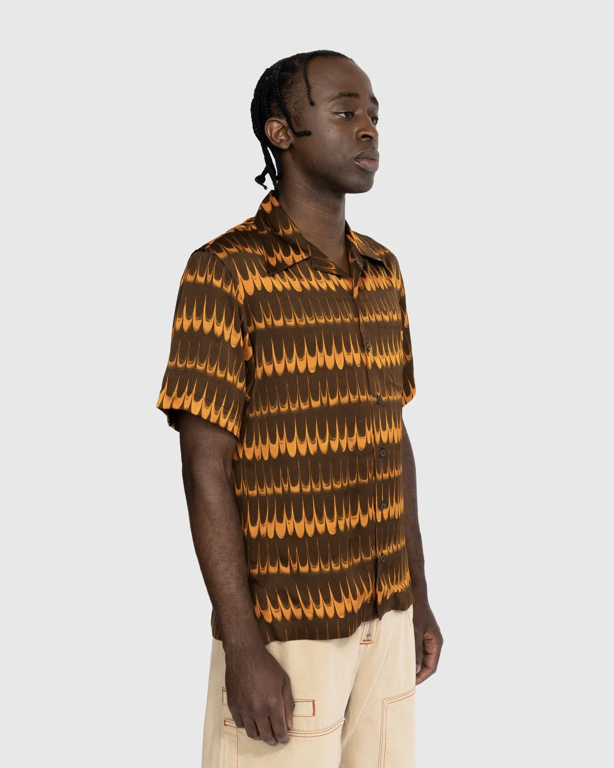 The Rhythm Shirt harkens back to decades past with a fun all-over pattern. Cut for a loose fit, the short-sleeve button-down is crafted from lightweight viscose satin and features a spread collar and single chest pocket detailed with an embroidered Wales Bonner logo.
