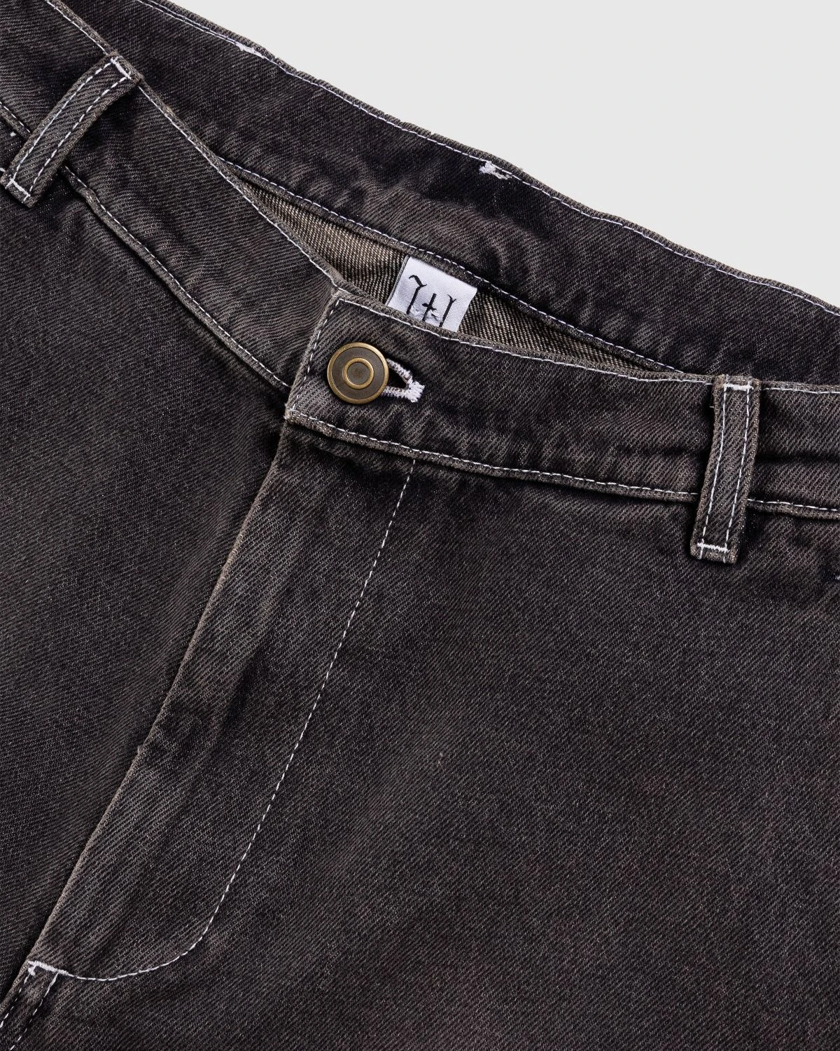 100% cotton. Topstitching. Button fastening. Zip fly. Belt loops. Adjustable tab at the back waist. Hammer loop. Side hand pockets. Two back pockets. Logo patch at the back waist.